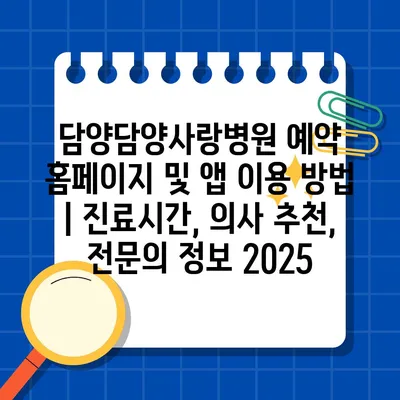 ✅ 담양사랑병원 예약 방법과 혜택을 알아보세요!