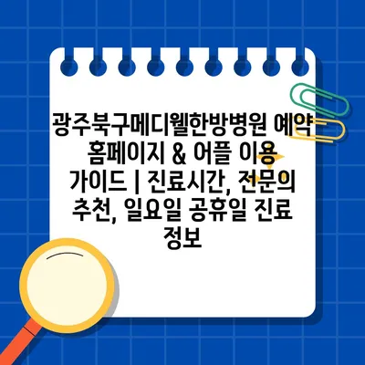 광주북구메디웰한방병원 예약 홈페이지 & 어플 이용 가이드 | 진료시간, 전문의 추천, 일요일 공휴일 진료 정보